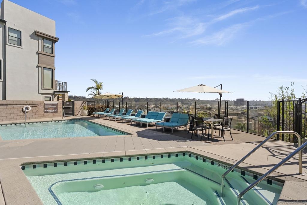 PENTHOUSE FOR UNDER $1.2M IN CIVITA! Welcome to your dream home in the sky with this rare penthouse offering in the highly coveted Lucent complex at Civita in Mission Valley. This stunning 2-bedroom, 2-bathroom residence also features a versatile loft space perfect for a home office plus an optional 3rd bedroom offering the ultimate blend of function and luxury. Perched on the top floor, the condo boasts an expansive balcony with a cozy outdoor fireplace and sweeping open views of the vibrant cityscape. Built in 2015, this modern home is one of the few penthouses ever available in Lucent, combining rare opportunity with refined design. Residents enjoy exclusive access to a private pool and spa with panoramic city views, as well as a luxurious community clubhouse, state-of-the-art fitness center, multiple resort-style pools, jungle gyms, parks, and more. You're just steps from Civita’s thriving hub of shops and restaurants, and minutes from Snapdragon Stadium, major freeways, Fashion Valley Mall, and all that San Diego has to offer. If you're seeking the perfect mix of luxury, location, and lifestyle, look no further. Top-floor penthouse. Top-tier amenities. Top location.