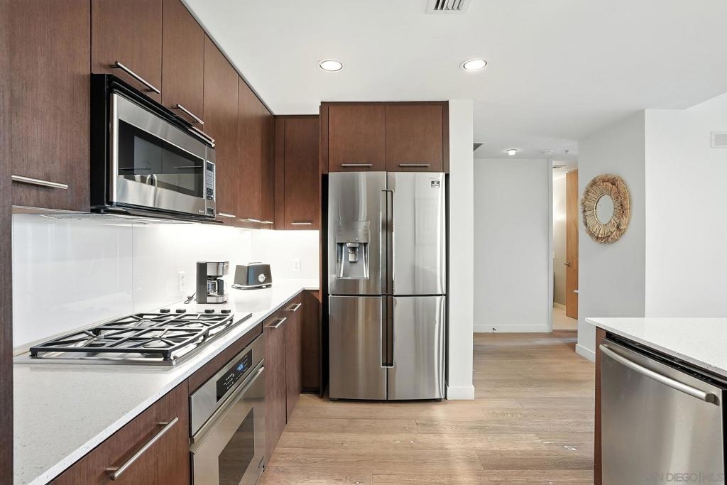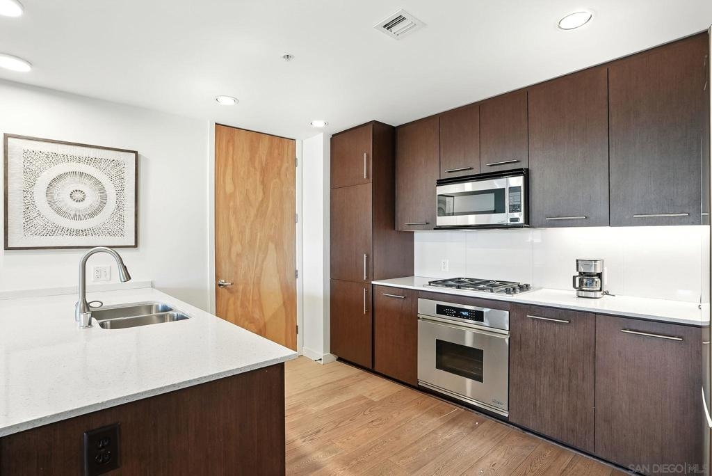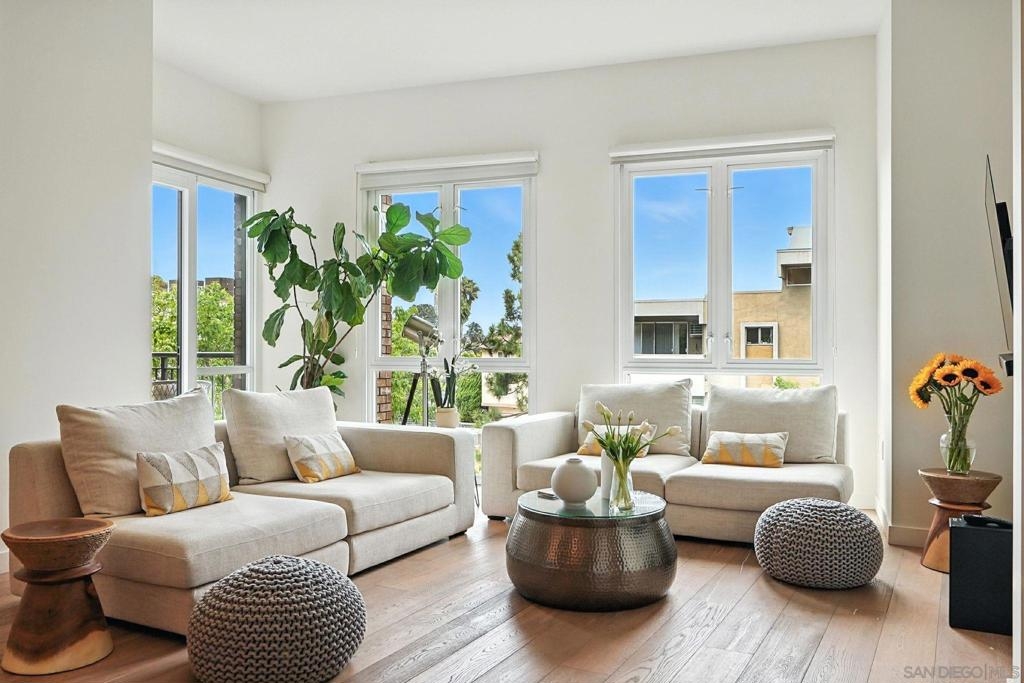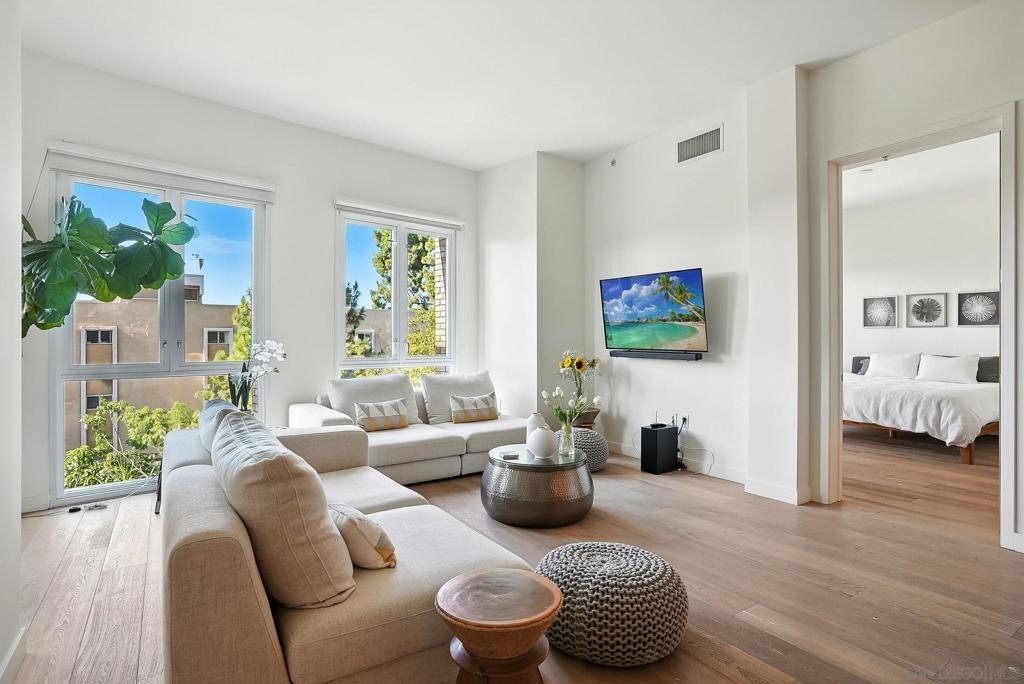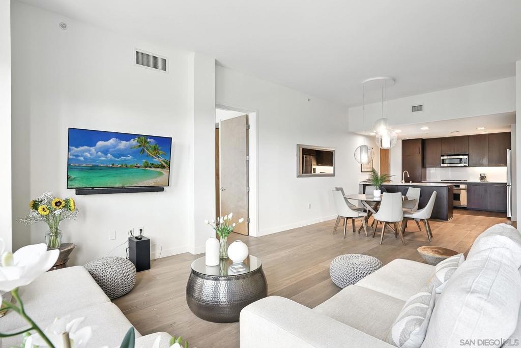 Step into elevated urban living with this stunning 2 bed, 2 bath condo in the prestigious 1Mission community—where timeless sophistication meets everyday comfort! The open-concept floor plan feels airy and expansive with soaring ceilings and sleek neutral-toned plank flooring throughout. At the heart of the home, the chef’s kitchen shines with a generous island for bar seating, modern cabinetry, and luxe finishes; perfect for both casual mornings and lively evenings of entertaining. Smart design meets convenience with a laundry room that doubles as a walk-in pantry, giving you functionality without sacrificing style. Unwind on not one, but two private balconies, enjoy peaceful moments from the living room or retreat to the spacious primary suite, where you’ll find a spa-inspired bathroom with dual vanities, walk-in closet, and tranquil design details. And the best part? Step outside your door and you’re in the heart of Mission Hills, surrounded by award-winning restaurants, boutique shops, and charming cafés. Opportunities like this rarely come up in one of San Diego’s most coveted addresses. Don’t just find a home - find your lifestyle at 1Mission.