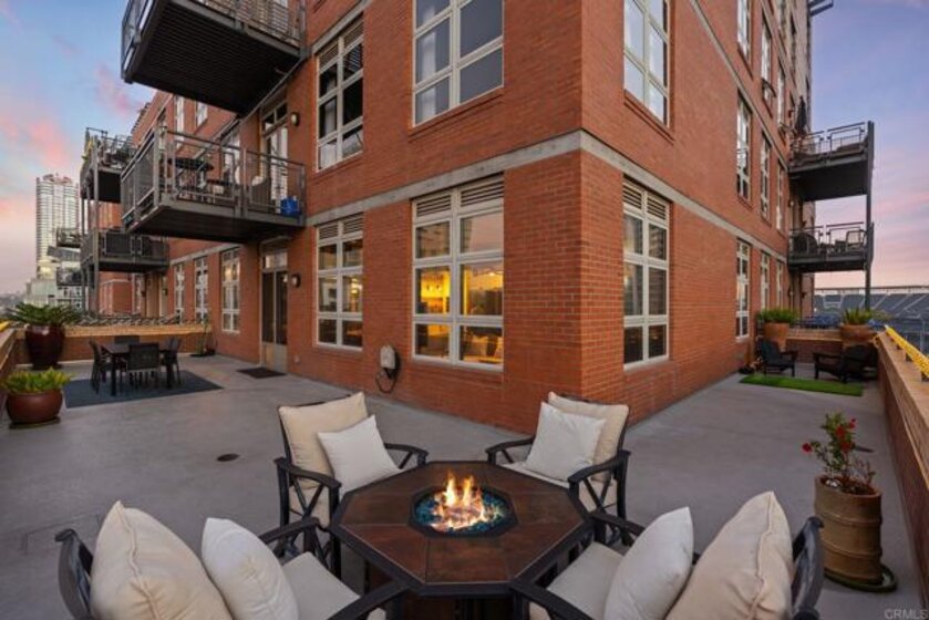 This LARGE Premier Parkloft residence features an expansive ~900 sq. ft. wrap-around balcony, creating a true extension of the living space and offering nearly 2,500 sq. ft. of combined indoor-outdoor living. Includes 2 side by side parking spaces, gym, and community center this building is rarely available! Located on the Northwest corner unit is ideal for entertaining — whether hosting friends before a Petco Park event or enjoying evenings beneath the glow of the city skyline. Inside, the open loft-style floor plan is highlighted by 10’6” ceilings, solid oak flooring, and thoughtfully curated custom upgrades throughout. The Studio Becker kitchen is both sleek and functional, featuring a gas range, new custom cabinetry with exceptional storage, and premium finishes. Additional highlights include in-unit washer and dryer, two 55” Sony OLED TVs, a built-in sound system, and custom lighting that sets the perfect ambiance. Exposed brick walls add warmth and character, while oversized windows seamlessly connect the interior to the outdoors. From the wrap-around balcony, enjoy live music drifting from nearby concerts or watch planes arrive from the east — all while double-pane windows provide a quiet, serene retreat indoors. Parkloft offers first-class amenities including two parking spaces, a 24/7 lobby attendant, fitness center, and a beautifully landscaped courtyard with BBQs — all located in the heart of East Village, just steps from Petco Park and the vibrant energy of Downtown San Diego. Please See AI edited photo for option to convert to a 1 Bedroom