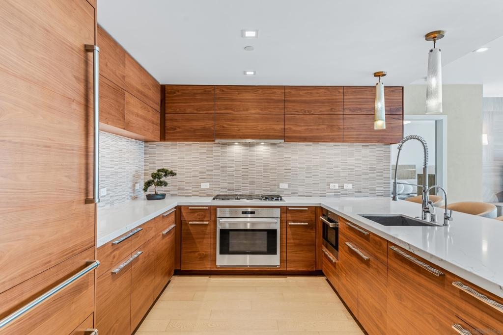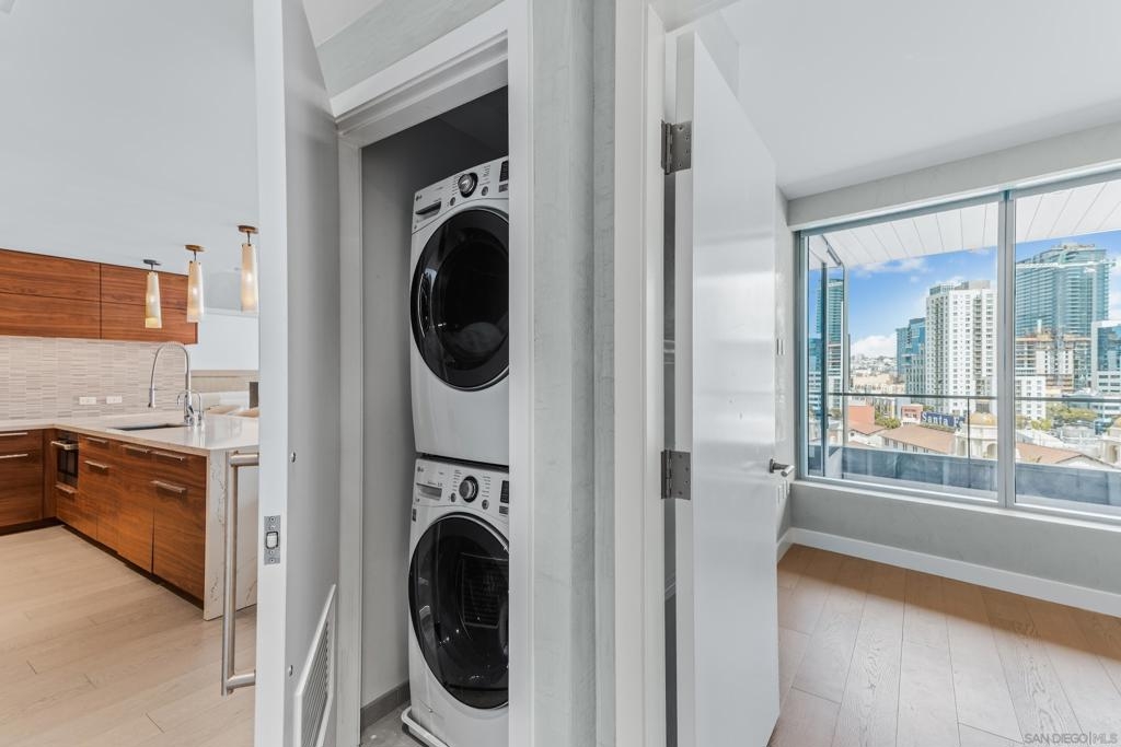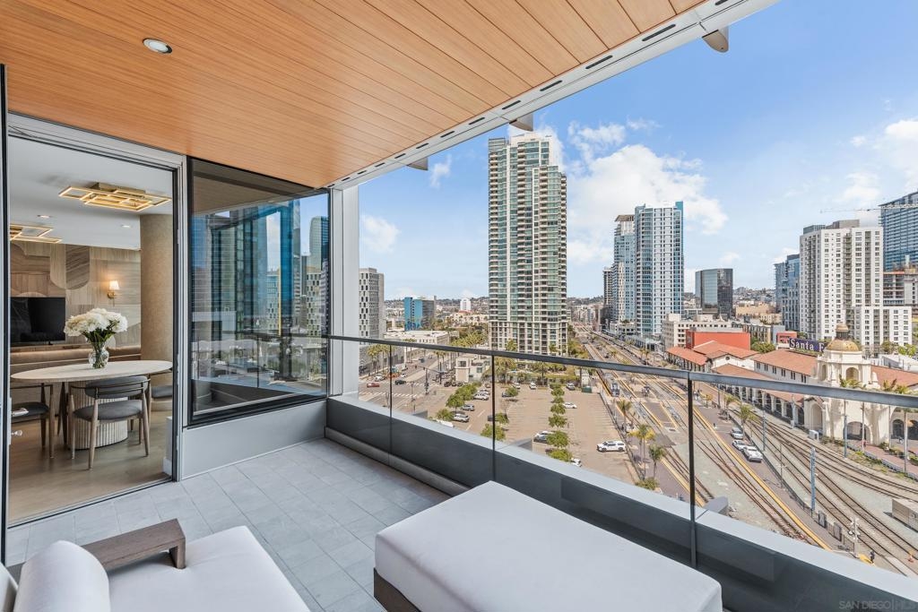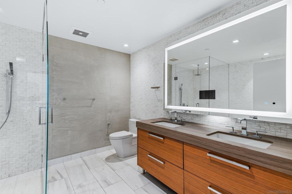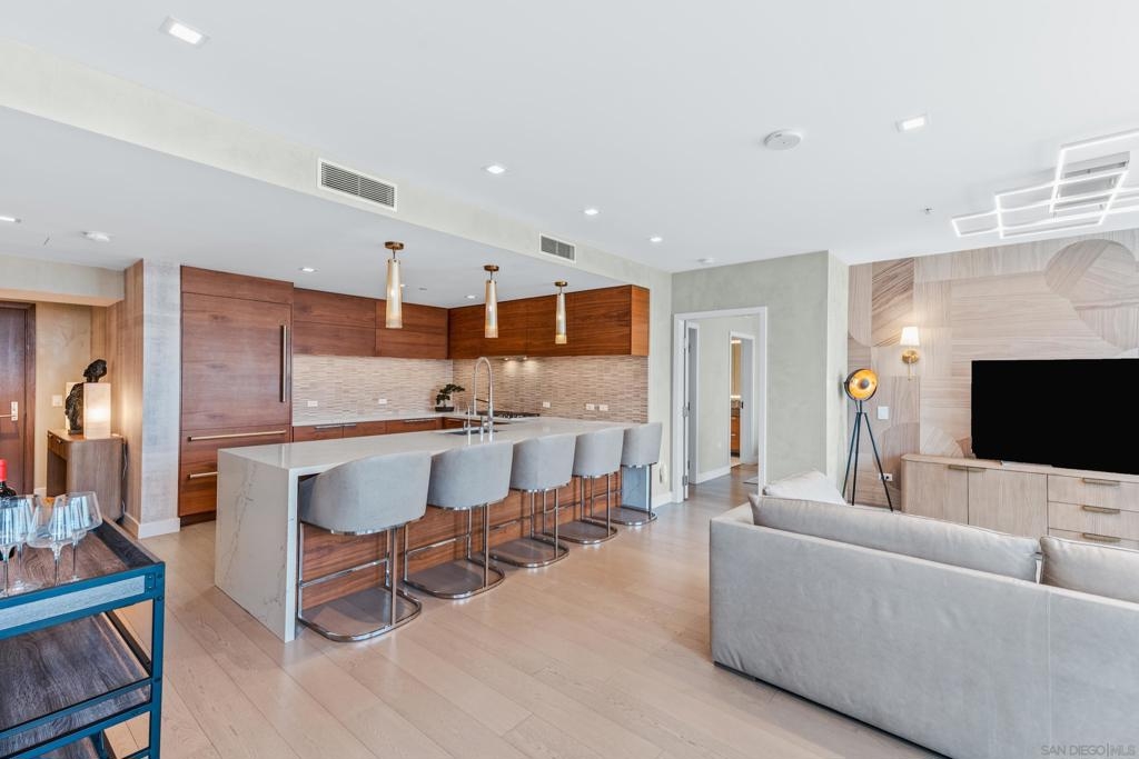 Experience the ultimate in luxury high-rise living at Pacific Gate, San Diego’s iconic waterfront address. Residence 1106 is a stunning 2-bedroom, 2-bath home spanning 1,390 sq. ft., offering an elegant blend of modern design and urban comfort. Expansive glass walls fill the home with natural light, showcasing dynamic city views framed by the downtown skyline. The open-concept living space features sophisticated upgrades like new wall coverings, fresh paint, and stylish lighting enhancements for added comfort and style. A split-bedroom layout ensures privacy and flexibility, while the private covered terrace extends your living area outdoors. The generous primary suite offers an elegant walk-in closet by California Closet Systems and a spa-inspired bath with heated floors, a walk-in shower, a soaking tub, and an anti-fog electric mirror with an integrated 10” TV screen. Automated blinds and a Smart Home system with climate control add convenience throughout the residence. The second bedroom offers flexibility as a home office or guest retreat. Residents enjoy unparalleled resort-style amenities including a private yacht share, luxury car fleet, chef concierge, guest suite, state-of-the-art fitness center with sauna and steam room, residents’ lounge, and an on-site restaurant led by a celebrity chef. Ideally located just steps from the bay, this residence is moments from Seaport Village, the Rady Shell, the new RaDD development, and San Diego’s finest dining, shopping, and entertainment. The first all-glass Super Prime residential tower in San Diego offers an unprecedented waterfront lifestyle with sky-high amenities and picture-postcard views. Directly overlooking the waterfront, the 41-story tower contains an exclusive offering of homes designed by Hirsch Bedner Associates. Renowned New York-based architectural firm Kohn Pedersen Fox (KPF) created a landmark that reimaged the San Diego skyline. The custom-engineered glass walls dynamically reflect the hues of the sky and the Pacific Ocean. Pacific Gate has evolved the San Diego skyline and represents the future of the city. The building is comprised of two-nested curved glass towers that rise as a single column from a three-story ground floor retail podium on the north and west sides of the tower. Because of the building’s curves and exterior glass, Pacific Gate offers a striking viewing experience from every vantage point. Residents arrive home to a beautifully landscaped motor court with a private luxury car fleet, which leads to a double-height lobby with a 24-hour concierge and porter services. Two levels of amenities boast a residents lounge ideal for events and everyday use, the fitness center contains an extensive range of state-of-the-art equipment. Adjacent to the fitness center is the steam and sauna retreats that open up to the fourth-floor pool terrace fitted with poolside cabanas and glass surround.