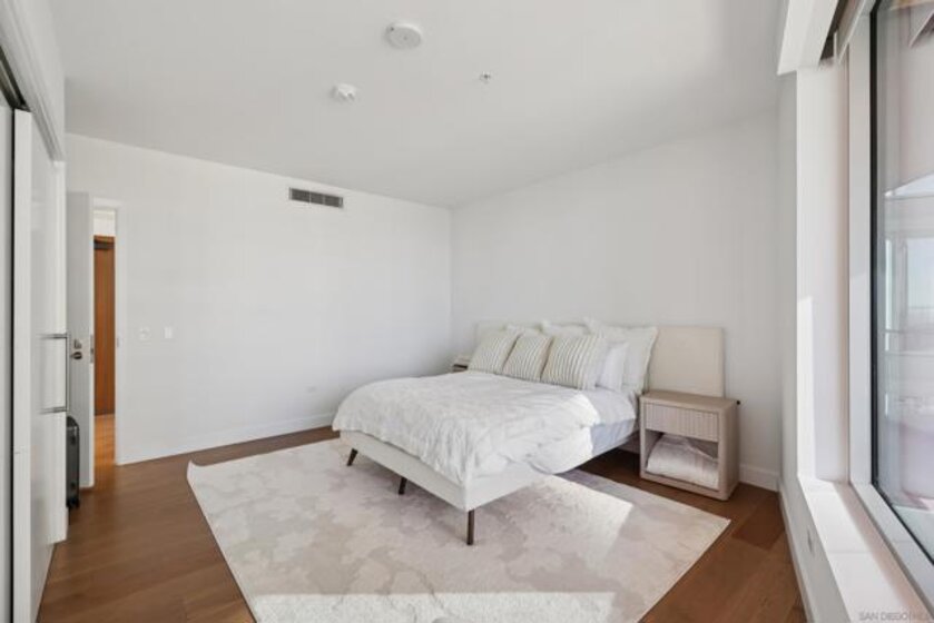 This exceptional southwest-facing 2bed2bath 1556sf residence at iconic Pacific Gate offers panoramic views of the downtown skyline, Pacific Ocean and Coronado Bridge. Floor-to-ceiling glass fills the open floor plan with natural light and opens to a spacious private balcony ideal for sunset views. Designer finishes include wood floors, custom built-ins, wine refrigerator, and a chef’s kitchen with Wolf, Sub-Zero, and Miele appliances. Enjoy world-class amenities including 24-hour concierge, luxury car fleet, EV charging, rooftop pool and cabanas, screening room, and pet retreat—offering the ultimate downtown San Diego luxury lifestyle. From the moment you enter, abundant natural light, designer accents, and breathtaking vistas create an unforgettable first impression. The open-concept layout features a spacious living and dining area that flows seamlessly to a large private balcony—perfect for enjoying spectacular sunsets and the energy of the city below. The thoughtfully designed split floor plan offers optimal privacy, ideal for guests or a sophisticated home office. This turnkey residence is the perfect blend of refined comfort, architectural excellence, and world-class convenience—offering a rare opportunity to live above it all in downtown San Diego’s most prestigious address.