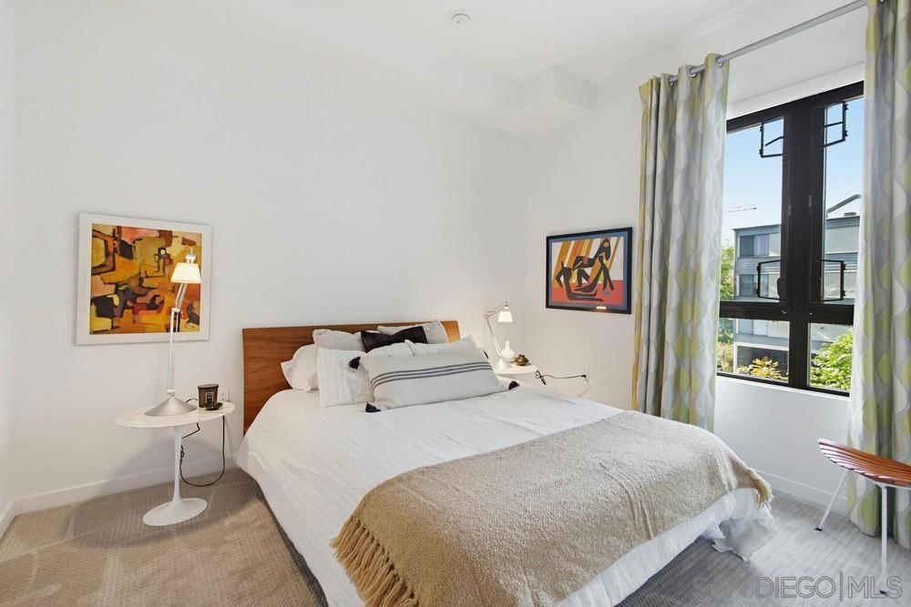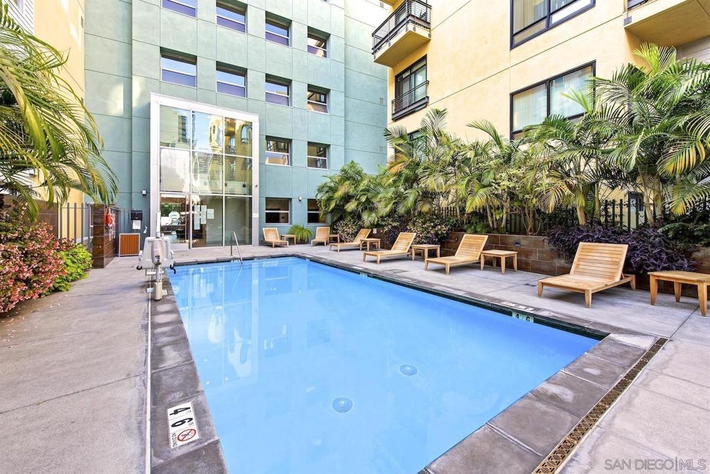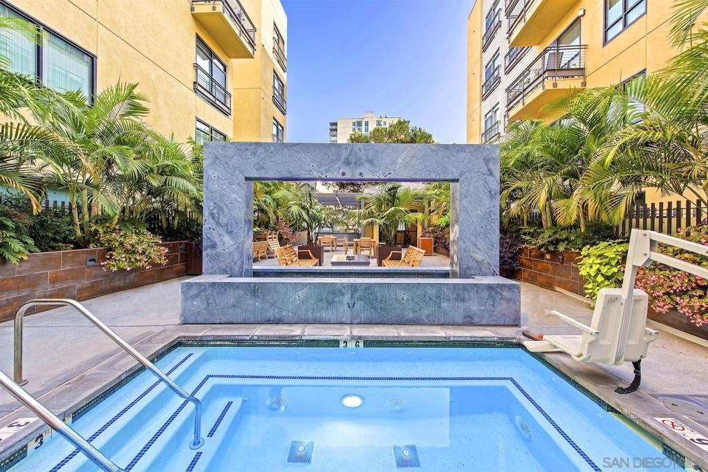 Live in the quaint Cortez Hill neighborhood in this beautiful, turn-key 1-bedroom residence. The open-concept layout is enhanced by high ceilings and luxury laminate plank flooring throughout. Enjoy sunsets from your private west-facing balcony overlooking the city. The kitchen features granite countertops and a breakfast bar. Additional highlights include central air conditioning and an in-unit laundry closet with washer and dryer, and 1 deeded parking space in underground garage. The building amenities include a pool, spa, gym,fire pit sitting area, BBQ area, and concierge staff 7 days a week. Easy freeway access. Walk to Little Italy, Gaslamp & Balboa Park from this central location.