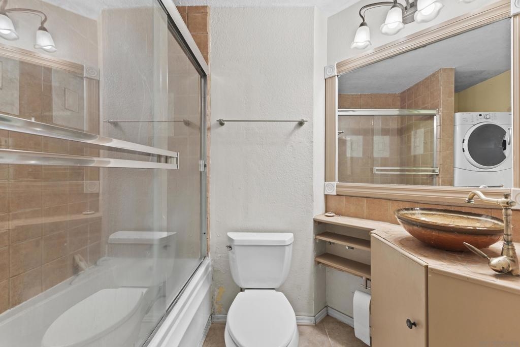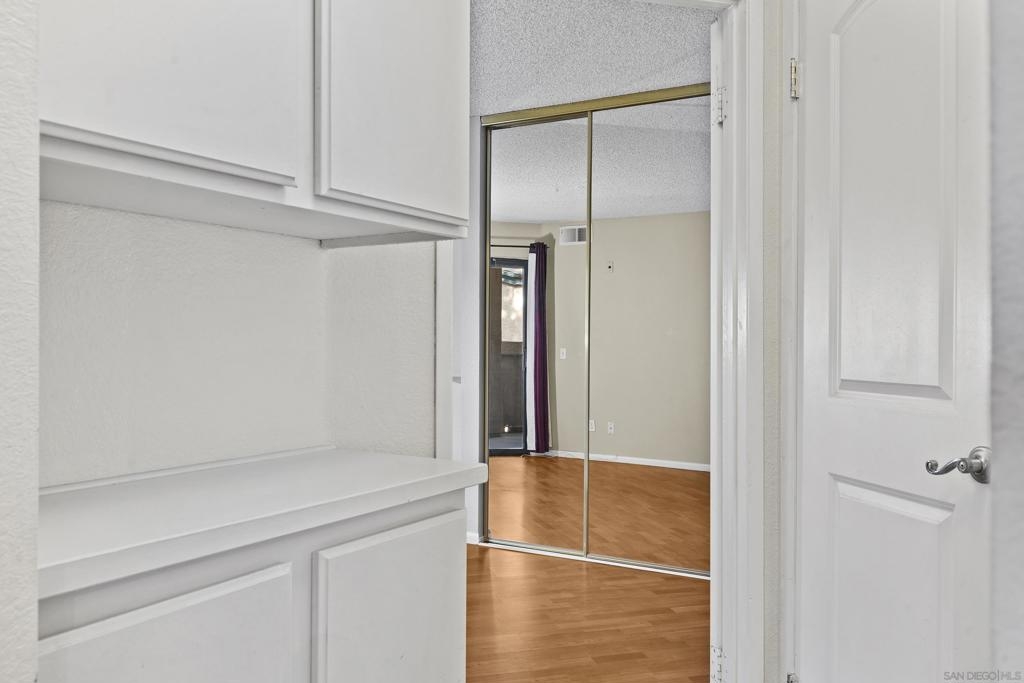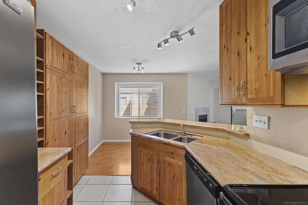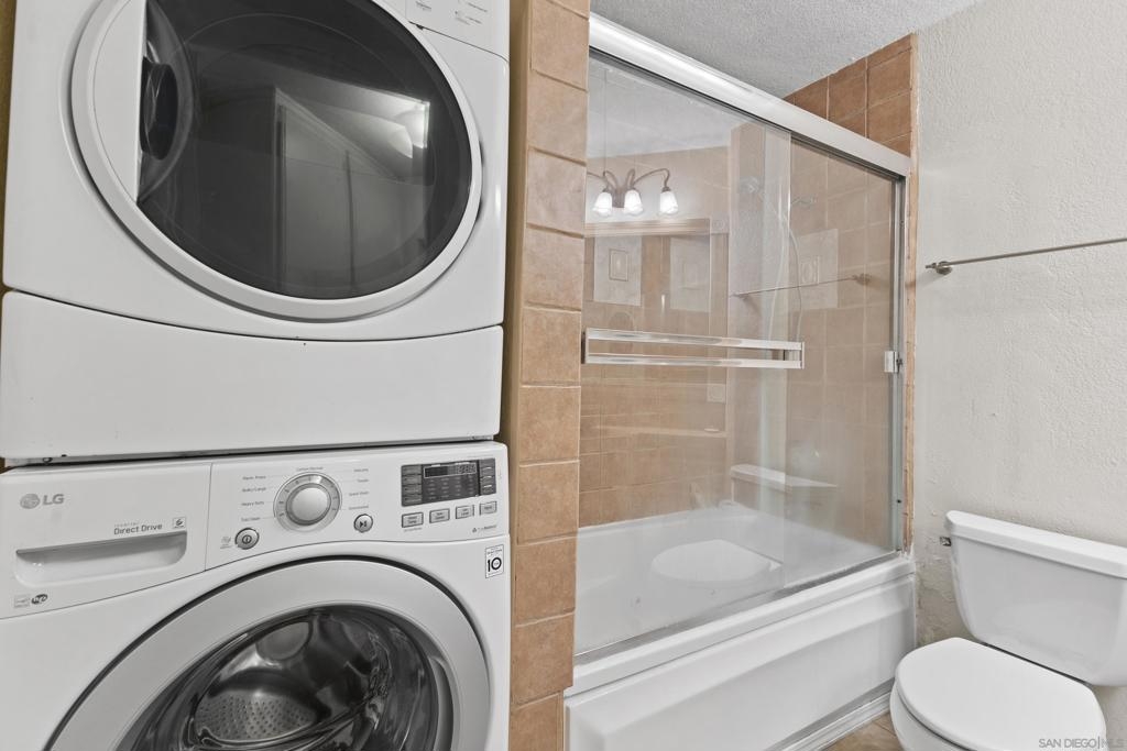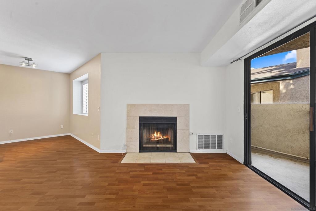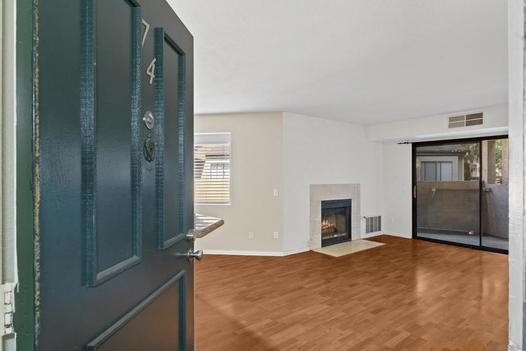 Welcome to Creekside living in Mira Mesa. This 1 bed, 1 bath condo offers granite counters, stainless appliances, and a gas fireplace. Enjoy your private balcony overlooking tranquil water features, plus in unit washer/dryer and a new central heat and A/C system installed in 2022. Ground level access with a 2 car tandem garage right across the hall from unit entrance. The complex features a pool, hot tub, and scenic grounds. Close to I-15, shopping, and dining. Perfect for easy San Diego living. Additional features include luxury front load washer and dryer, built-in microwave, double-door refrigerator, dishwasher, and electric range. The new 18 SEER air conditioner installed in 2022 is still under warranty. Sliding doors from both the living room and bedroom open to an ample balcony with peaceful water feature views. The spacious bedroom offers generous closet space with mirrored doors. Parking includes a detached 2 car tandem garage conveniently located across the hall from the unit entrance, plus an additional unassigned parking space via permit. Water and trash included in HOA Fee. The Creekside community boasts resort style amenities including a swimming pool, hot tub, BBQ areas, and beautifully maintained grounds with waterfalls and koi ponds. Centrally located in Mira Mesa with quick access to Interstate 15, shopping centers, restaurants, and employment hubs. No stairs to unit entry.